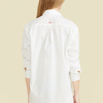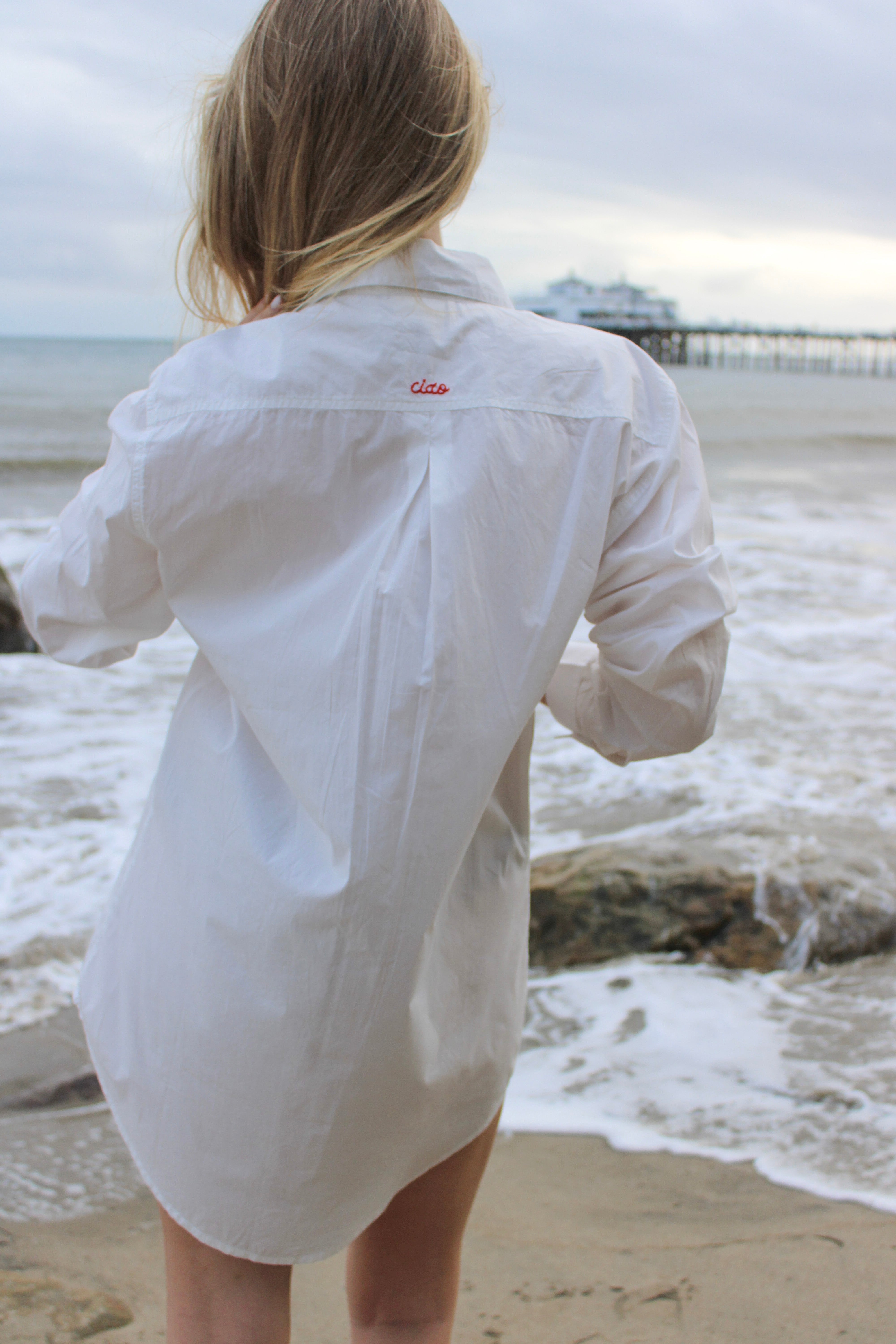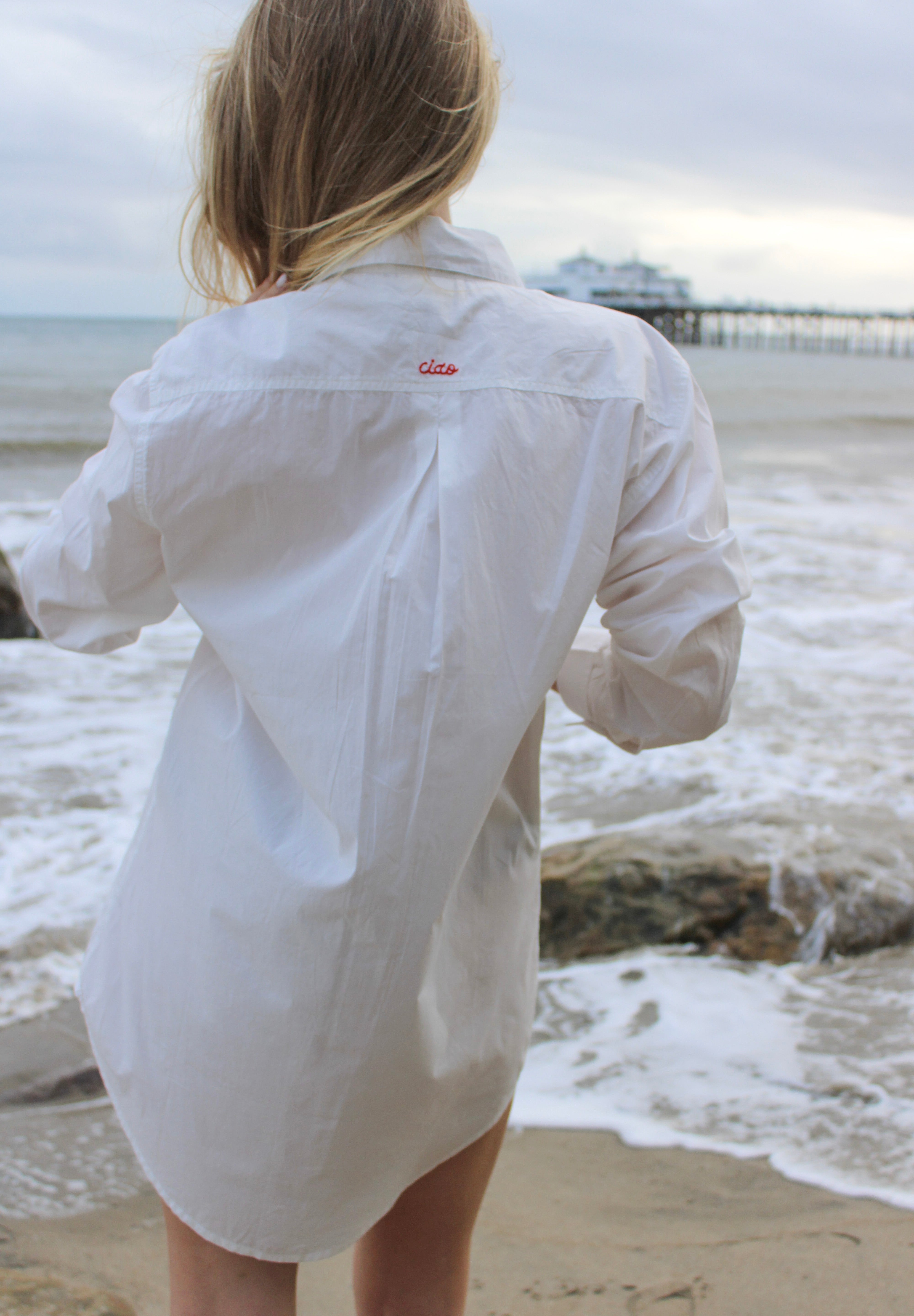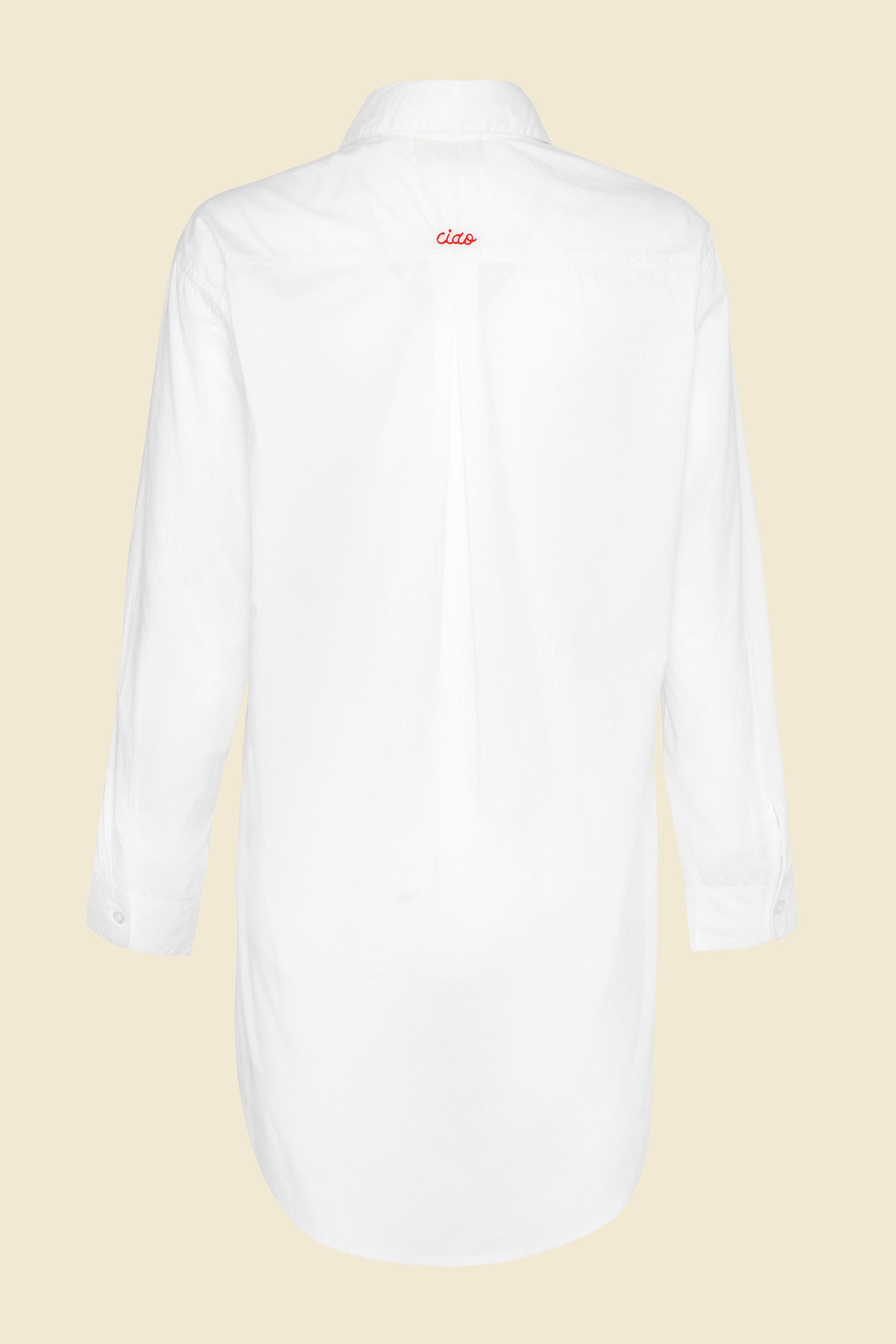 Made in a crisp white cotton fabric, the Ciao Shirt Dress is the perfect oversized, classic button-down with a special embroidered "Ciao" detail on the back. The carefully placed buttons on the cuff and the extra length in the back to provide more coverage prove that our signature shirt dress is a cover-up you will want to wear year after year.