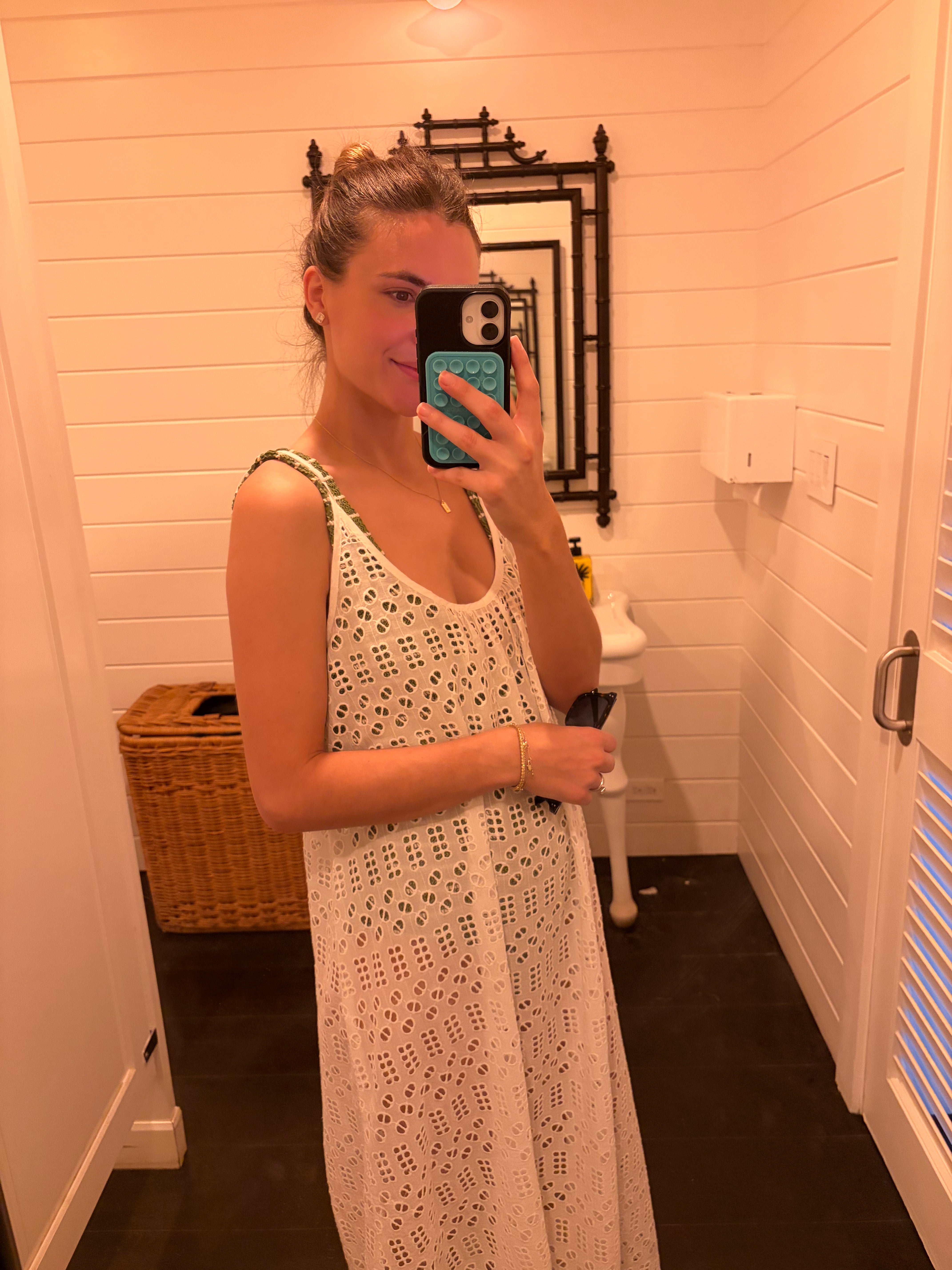 Light, airy, and effortlessly stylish, the Dunmore Dress is your go-to cover-up for poolside lounging and beachside strolls. Made from breathable cotton with delicate eyelet detailing, this tank-style dress slips on with ease and adds a touch of charm to any swim look. Whether you're heading to the cabana or grabbing lunch al fresco, the Dunmore keeps you cool, comfortable, and perfectly pulled together.