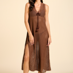 Effortlessly chic and endlessly comfortable, the Sorrento Dress brings easy elegance to beach days and beyond. This lightweight crochet maxi features a relaxed fit, deep V-neckline, and an adjustable front tie for customizable coverage. Just add sandals and a sun hat for a laid-back, polished vacation look.