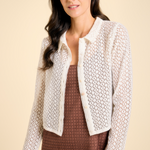 Breezy, beautiful, and effortlessly refined, the Dinner Sweater is the ultimate layering piece for your next getaway. Crafted from soft, lightweight cotton crochet, this white button-down sweater exudes coastal charm with an airy, open-knit design that’s perfect for warm weather. Whether thrown over a swimsuit or paired with high-waisted linen pants, the Dinner Sweater adds a touch of laid-back luxury to any resort look. A timeless staple for sun-soaked days and balmy evenings alike.