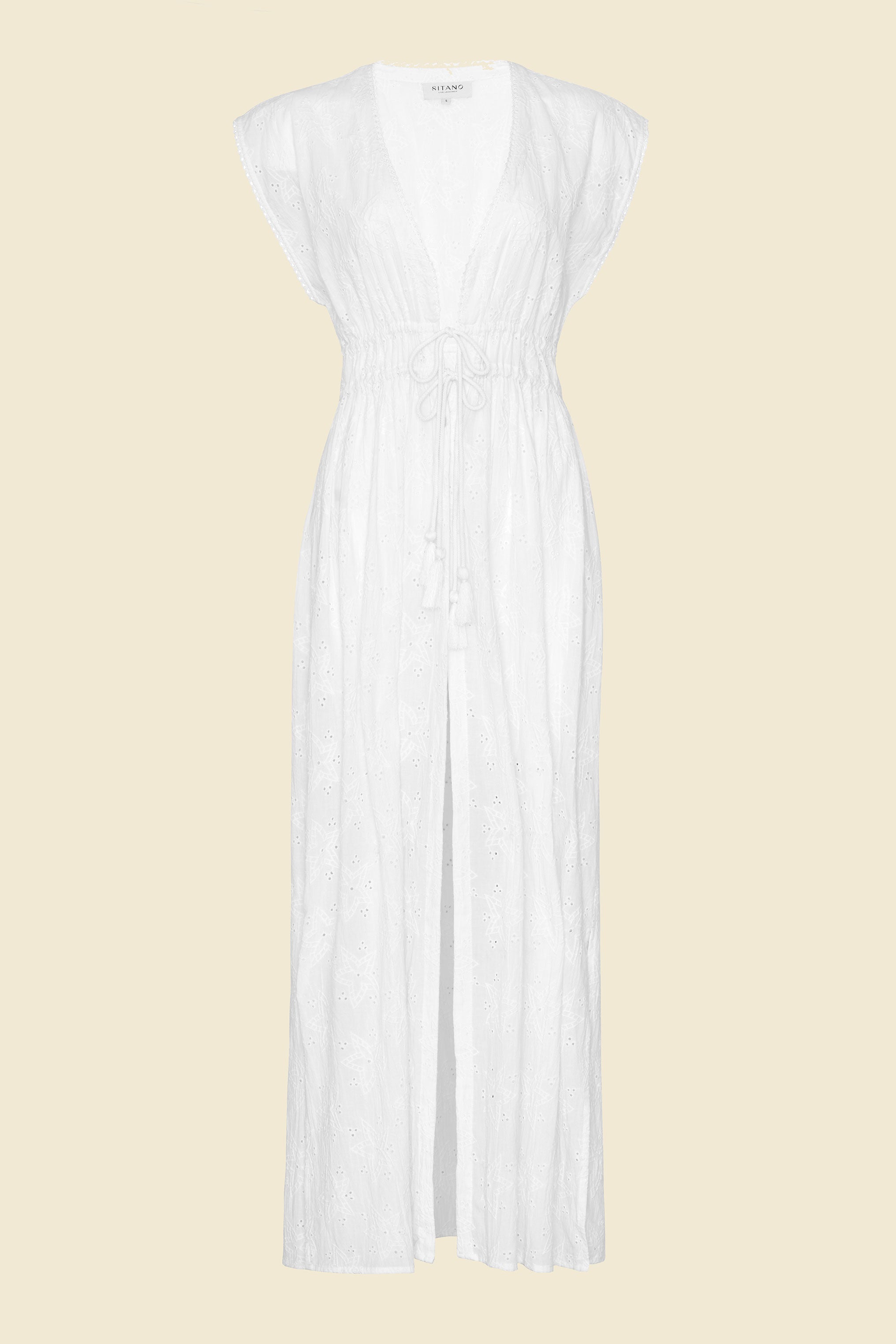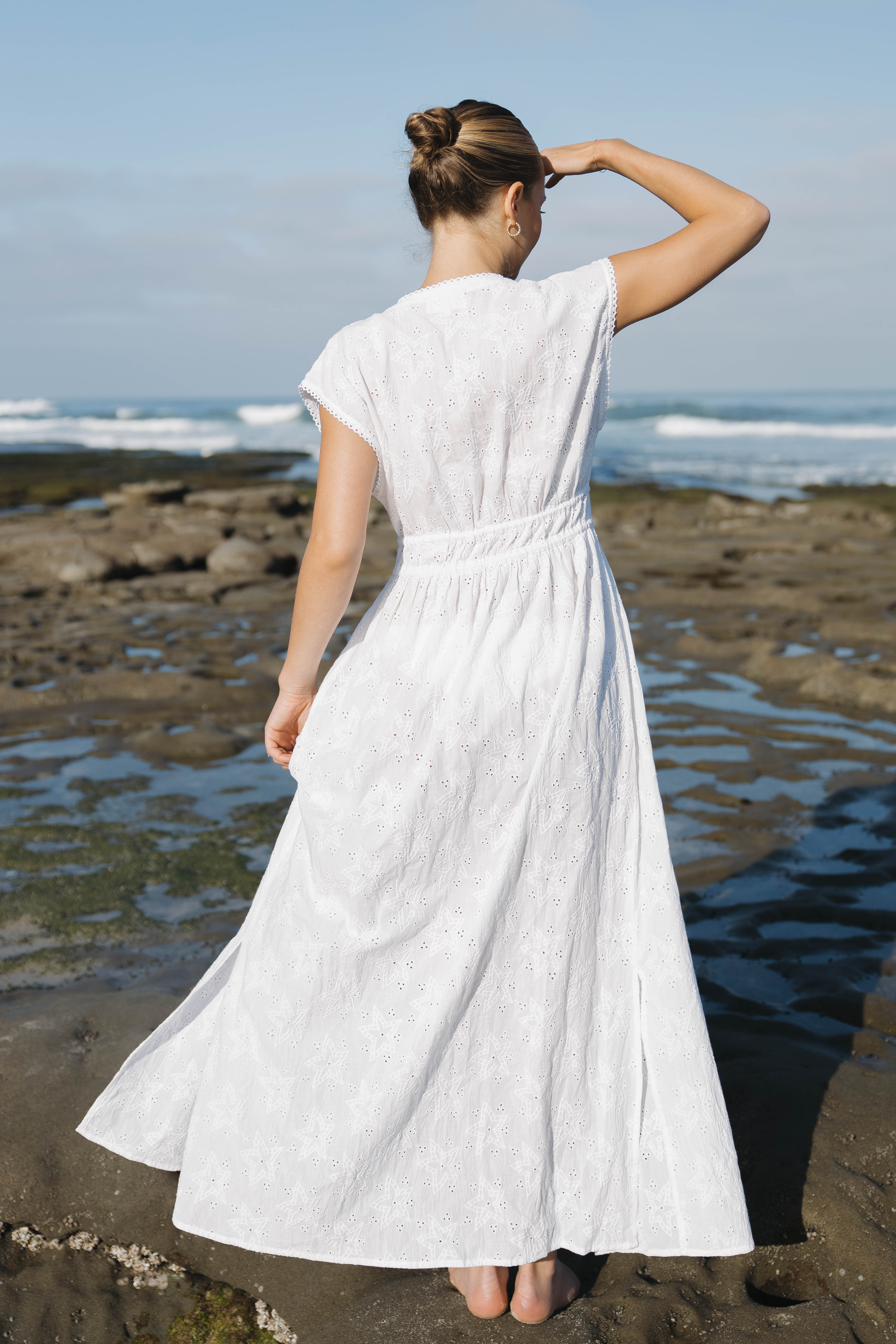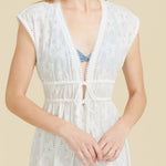 Upgrade your getaway looks with the Fontelina Dress - an effortlessly chic cover-up featuring a starry eyelet fabric, double drawstring waist, and a hidden clasp on the chest for extra coverage. This dress is all about the details and will leave you feeling beautiful and confident.