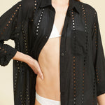 Wear it open and flowy for a relaxed look by the pool or buttoned up to knock around the beach club.