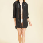 Wear it open and flowy for a relaxed look by the pool or buttoned up to knock around the beach club.
