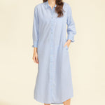 Made in a beautiful, striped cotton fabric, the Riga Dress is the perfect maxi button-down. The carefully placed buttons on the cuff and the crisp cotton fabric prove that the Riga Dress is a cover-up you will want to wear year after year.