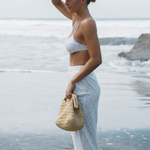 Style your swimsuit with a soft coverup pant/shirt set. The Siena Pant is a textured cotton jacquard fabric with elastic waistband and side pockets. These flowy and easy pants offer the full coverage you need for any destination in mind.