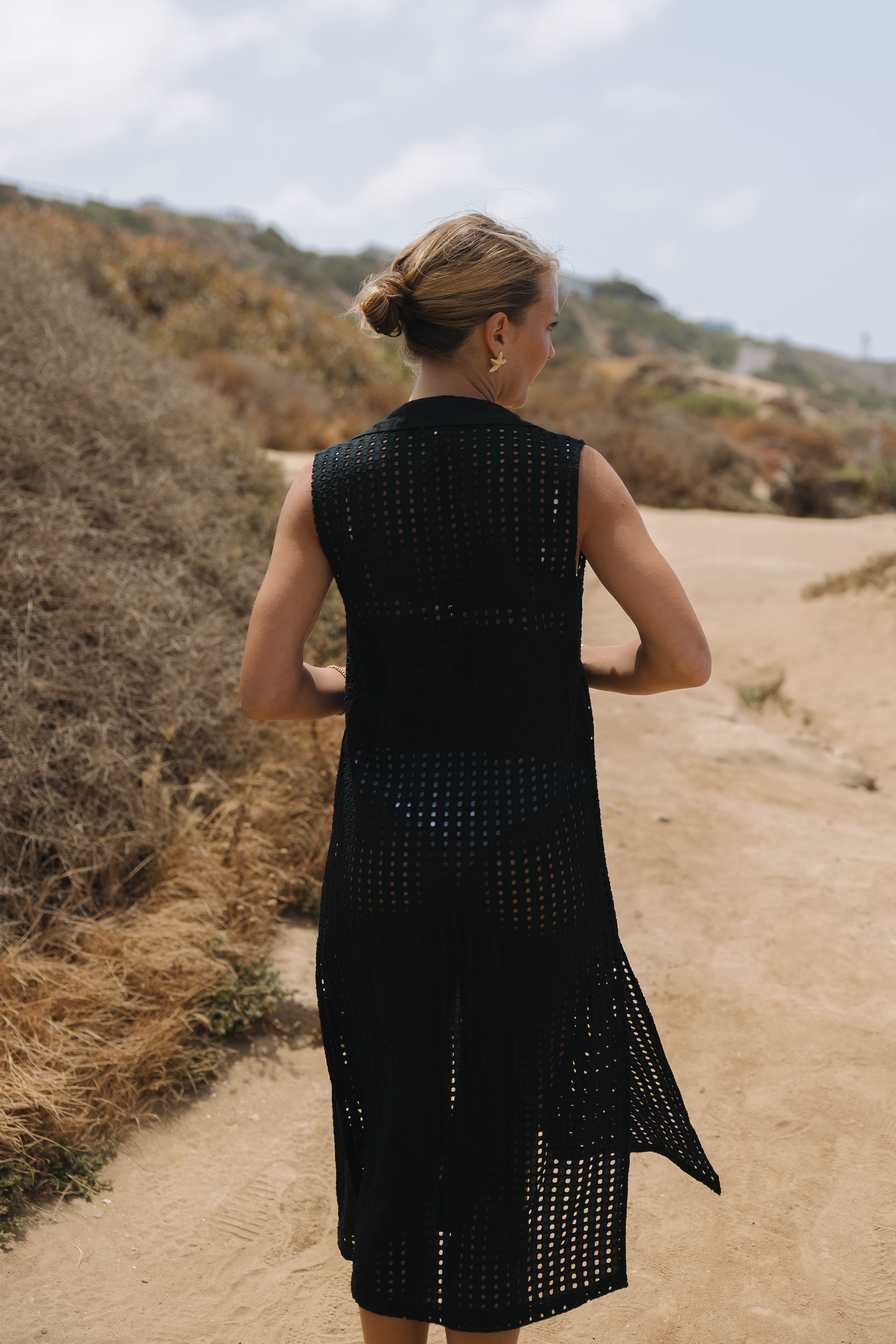 MORE SIZES AVAILABLE SOON. Made in a beautiful cotton eyelet, the Sofia dress is the ultimate sleeveless button down with a slimming silhouette. Paired with your favorite swimsuit, the Sofia Dress is perfect for the pool, beach, and beyond. It comes with an optional liner to wear as an everyday dress!