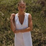 Bring comfort, style, and ease to the beach in the Sorrento Dress. This crochet maxi provides an easy fit with a deep v-neck and front tie to give provide some optional coverage. Pair it with sandals and a sun hat for a chic vacay outfit.