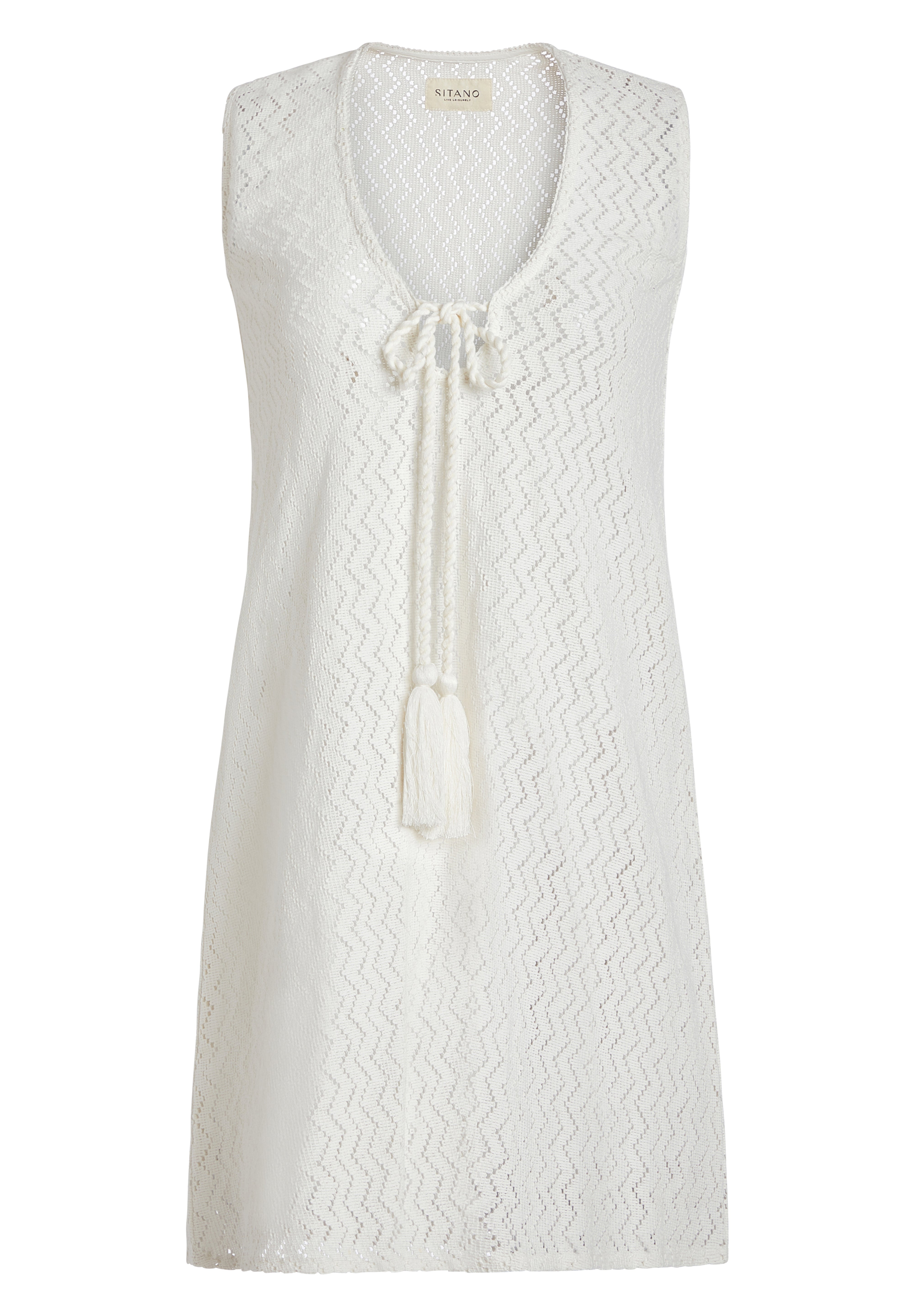 Our best-selling Sorrento dress now comes in a shorter version. This soft crochet dress provides an easy fit with a deep v-neck and front tie to give provide some optional coverage. Pair it with sandals and a sun hat for a chic vacay outfit.