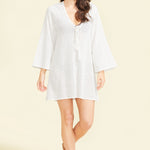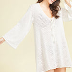 A classic silhouette from our Resort 2025 collection is the Sorrento Bell Sleeve Dress. Made in lightweight cotton crochet, this swim cover-up tunic dress features an ultra-flattering, flowy fit with a bow detail in the front to give it that feminine flare.