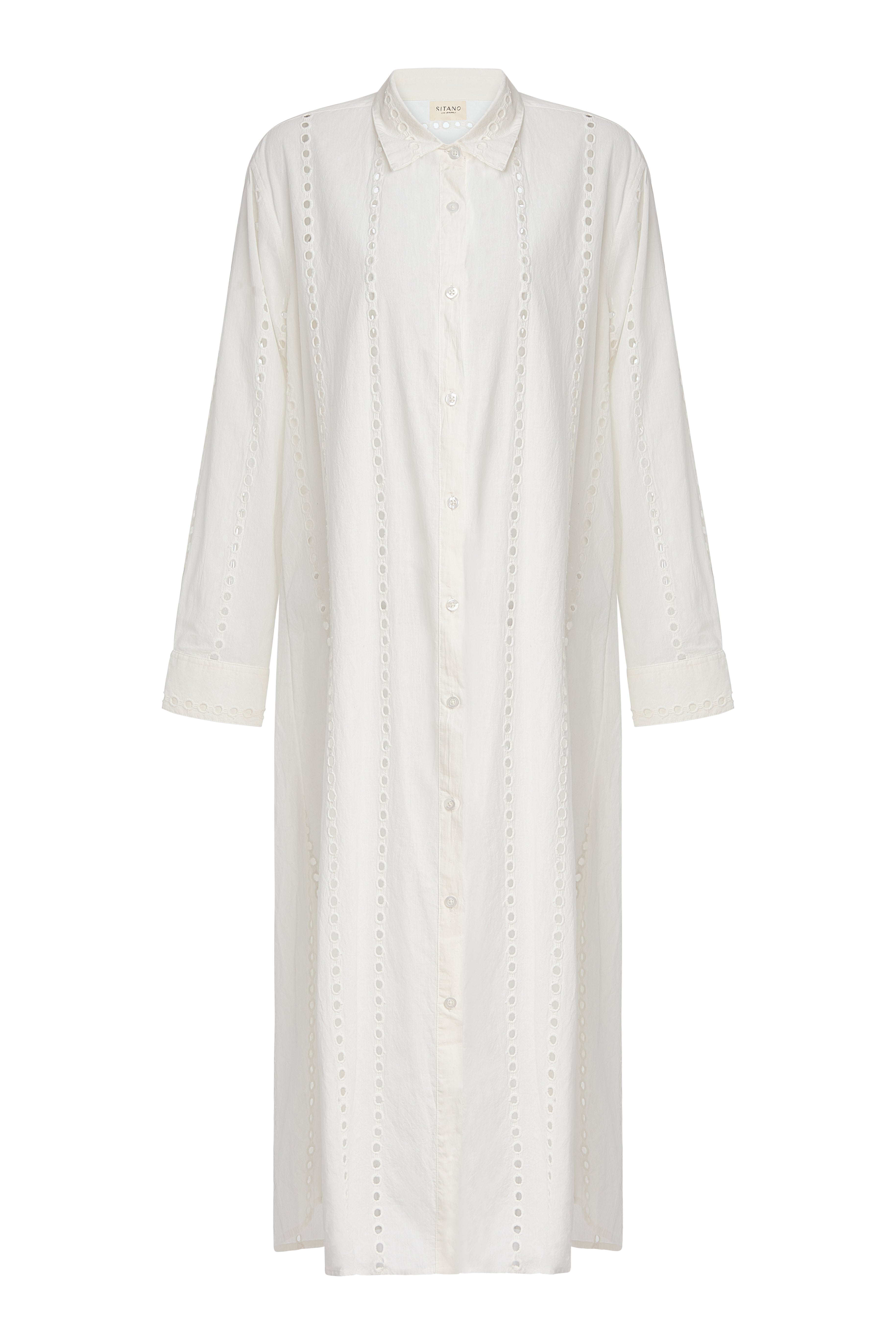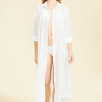For this specific style, we recommend that you size down one size. Made in a beautiful, embroidered fabric, the Positano Maxi Shirt Dress is the perfect oversized, classic button-down. The carefully placed buttons on the cuff and the extra length in the back prove that the Positano Maxi Shirt Dress is a cover-up you will want to wear year after year.